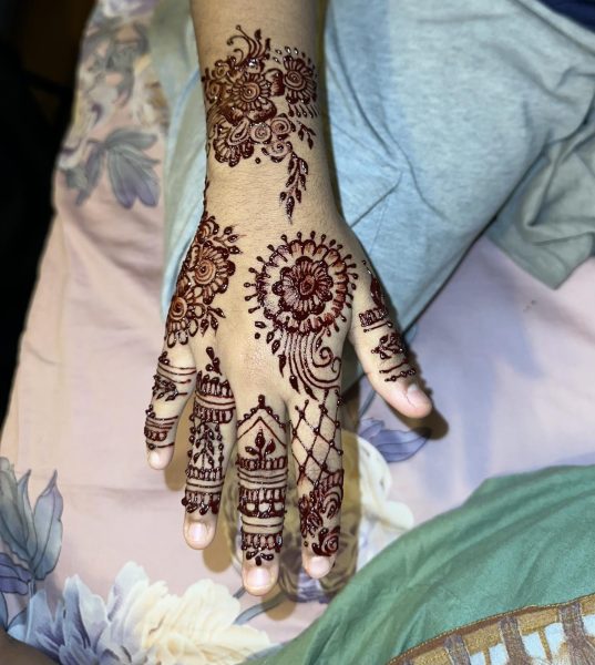 Freshman Friza Alam draws inspiration from her American and Bangladeshi heritage, particularly from Henna. In Bangladesh, Henna (known as Mehendi) serves various purposes, notably as body art. Intricate designs are applied to hands and feet for special occasions, especially weddings and religious celebrations. Additionally, Henna is used as a natural hair dye that adds a reddish tint to dark hair, helping to cover gray for both men and women. Beyond its aesthetic appeal, Henna symbolizes joy, love, and blessings, and it has traditional medicinal applications for the skin.